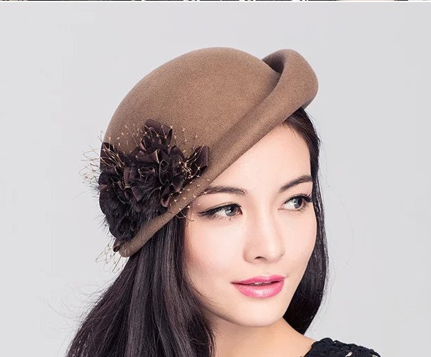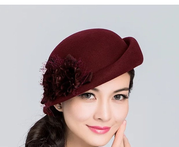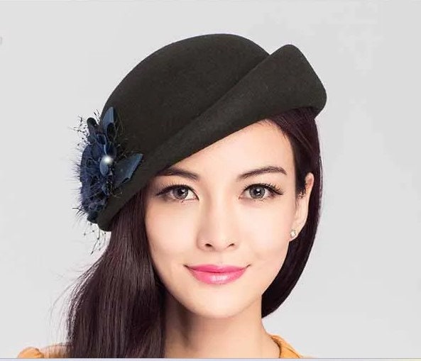 Elegant 100% Wool Beret French Women Hats Winter Black Fedora Church Hat Wedding Ladies Felt Flower Caps Pillbox Hat Chapeau Hats